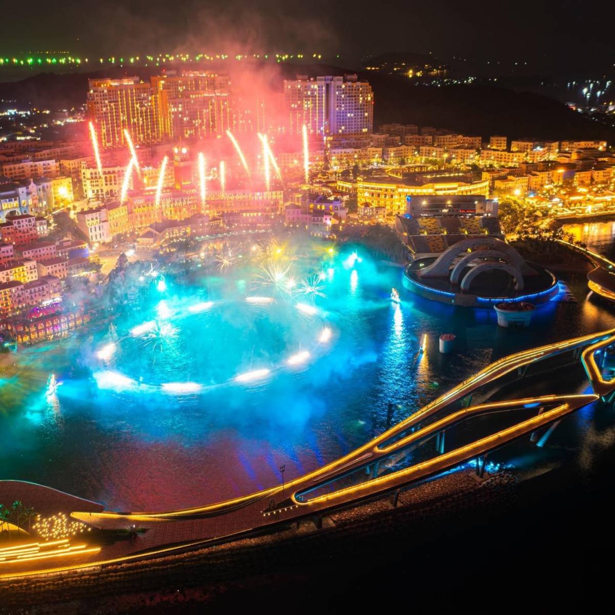 Featuring 24 elite jetski and flyboard athletes from around the globe, the performance delivers stunning displays of skill, seamlessly paired with unique fireworks effects making their debut in Vietnam. This artistic symphony is further enriched by poignant melodies and traditional Vietnamese kite fireworks, offering guests an unforgettable and deeply moving experience.