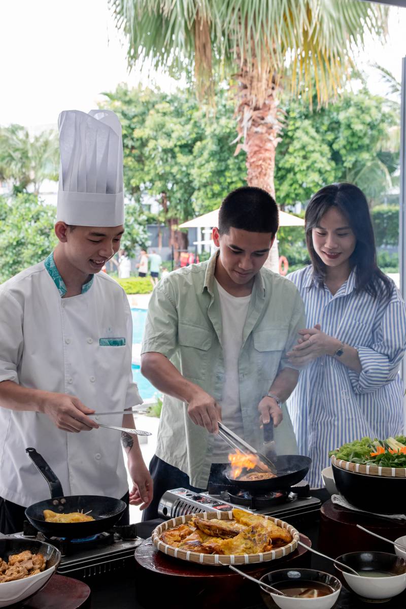 “Lớp học nấu ăn” tại nhà hàng Clubhouse là một hoạt động rất được yêu thích tại Premier Residences Phu Quoc Emerald Bay. Tại đây, du khách sẽ được đồng hành cùng với các đầu bếp tài năng để tìm hiểu về nền ẩm thực đa dạng của Phú Quốc, cũng như khám phá thêm những công thức nấu ăn độc đáo để thổi một làn gió mới vào những món ăn tưởng chừng như đã rất quen thuộc như bánh xèo và gỏi cuốn.